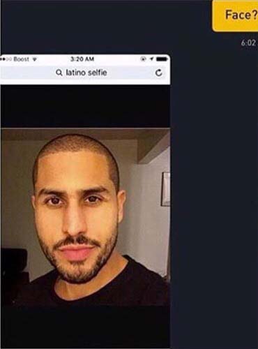 お気づきだろうか?男性の顔写真の上にサーチ画面に「ラテン系男性 セルフィー(latino selfie)」と検索した痕跡がはっきりと残っていた。この男性は検索して見つけたあかの他人の写真を自分の「顔写真」として偽ったうえに、キャプチャーした画像から証拠を消すの忘れてしまったのだ。