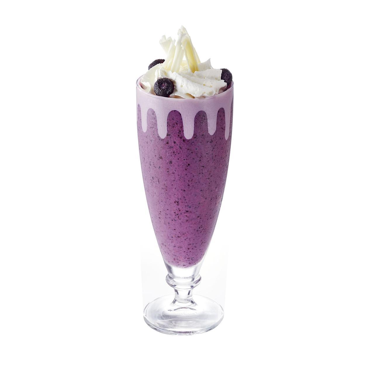 ブルーベリー果肉を40%使用、フルーティーな味わいのアイスチョコレートドリンク。ミルキーなホワイトチョコレートのやさしい甘さと、ブルーベリーの心地よい酸味、粒々の食感が楽しめる。
