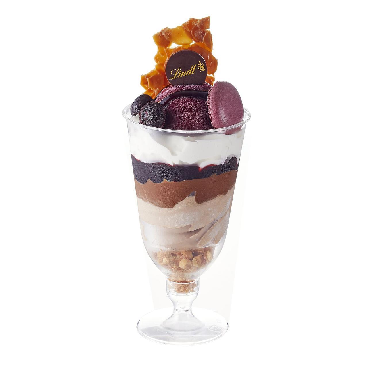 スイスのプレミアムチョコ、リンツが限定で「ブルーベリー」のドリンク、パフェ、マカロンを発売