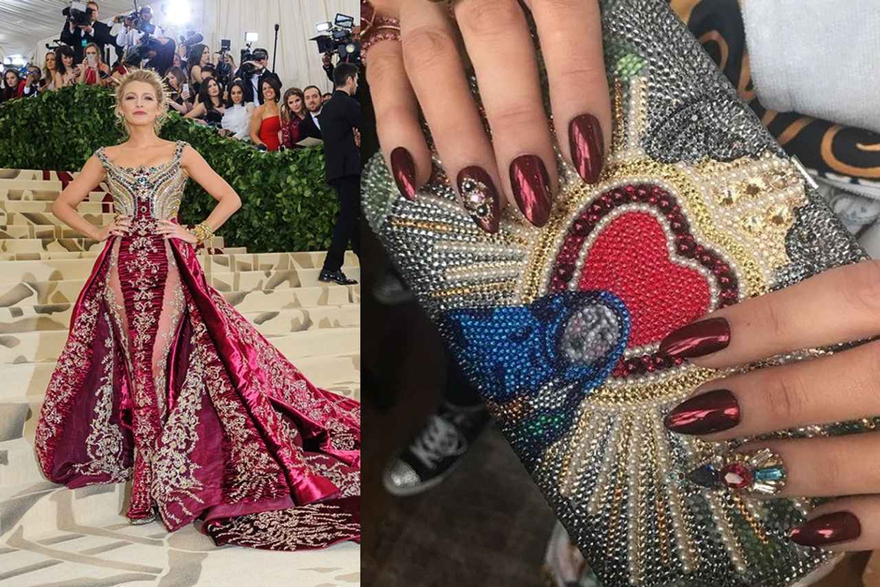 制作に600時間以上かけたという渾身のドレス姿が「女神のよう」と高評価を受けたブレイク。ドレスの色に合わせたワインレッドのクロムネイルは、制作に1ヵ月以上かかったうえ、なんとメットガラ前日に仕上がったという。