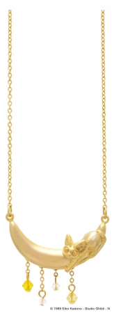 月に乗ったジジが星のようなスワロフスキーを見つめるモチーフの「魔女の宅急便 ネックレス ジジムーン」は、明るいゴールドがきらきら輝き、胸元を明るく彩る。