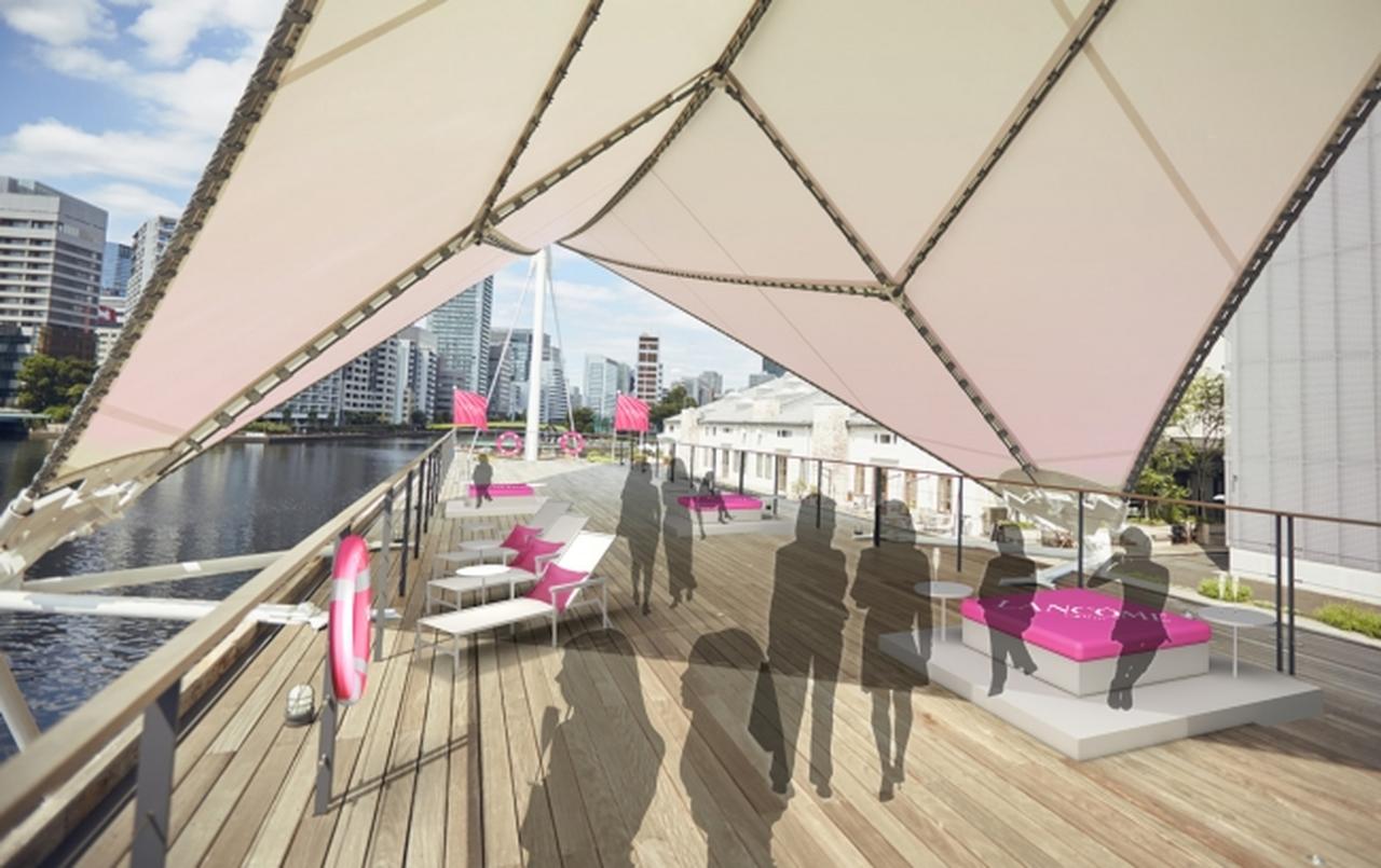天王洲運河に浮かぶ、 建築家・隈研吾氏監修の船上スペース「T-LOTUS M」を、二日間限定で「LANCÔME号」 と称して開催されるフォトジェニックで華やかなパーティーの中で、新製品のタッチ&トライやアーティストによるメイクも体験できる。