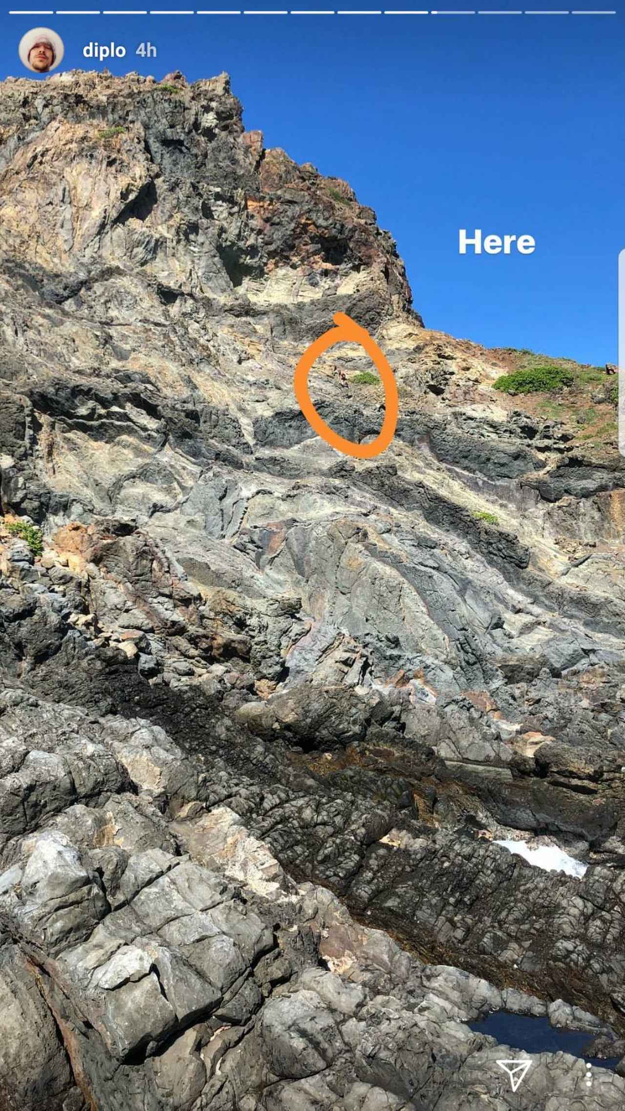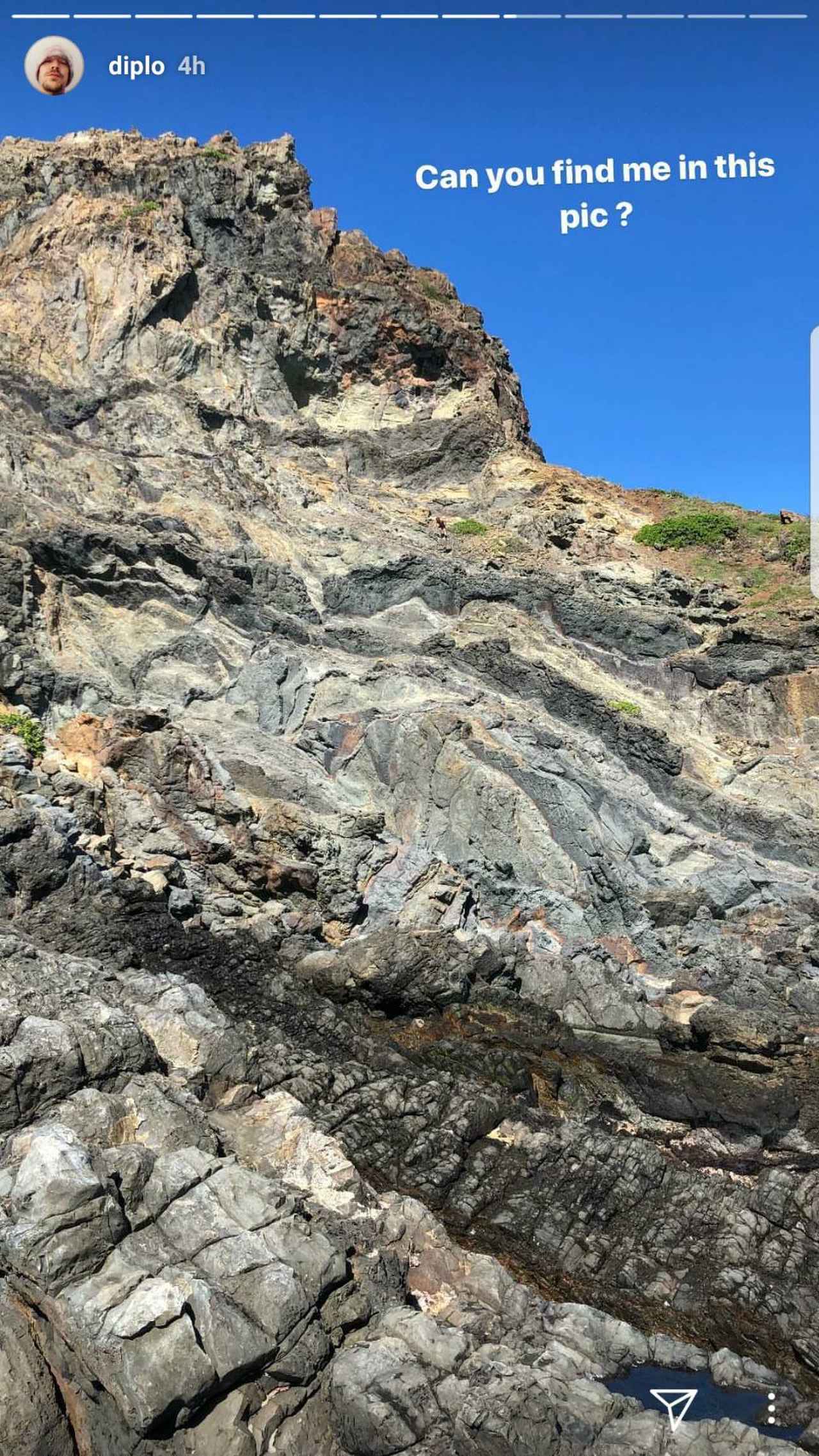 そんなディプロが、「この写真で僕を見つけられる?」と崖の写真を公開。