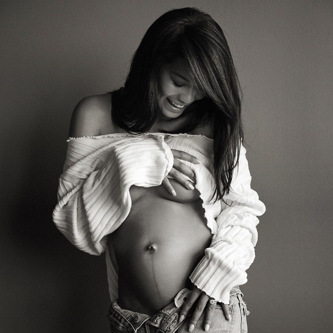 またシャネルとスターリングは、トップレス姿のシャネルのお腹にスターリングが口づけする写真なども投稿し、妊娠を祝福。