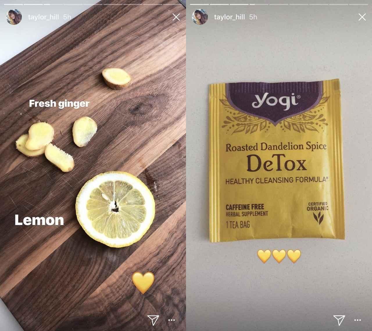 「これで目が覚めるわよ」とコメントを付けて寝起きの姿でデトックスティーを飲む様子を投稿したテイラー。とても簡単に作れるテイラーもお墨付きのデトックスティー、ぜひ家で試してみて。