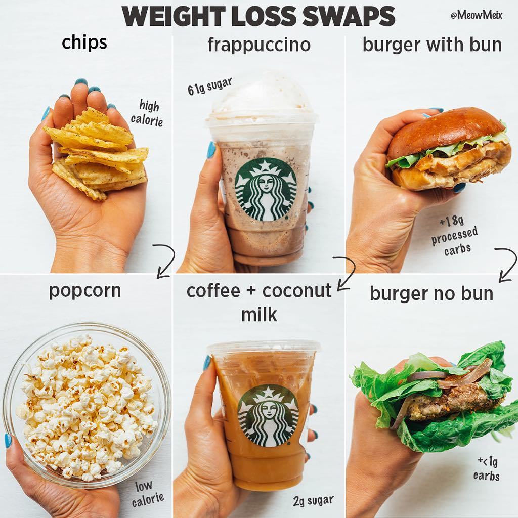 Amanda MeixnerさんはInstagramを利用しています:「Small tweaks add up! These swaps will not only save your waistline but also your health. The top side is full of processed foods, bad…」