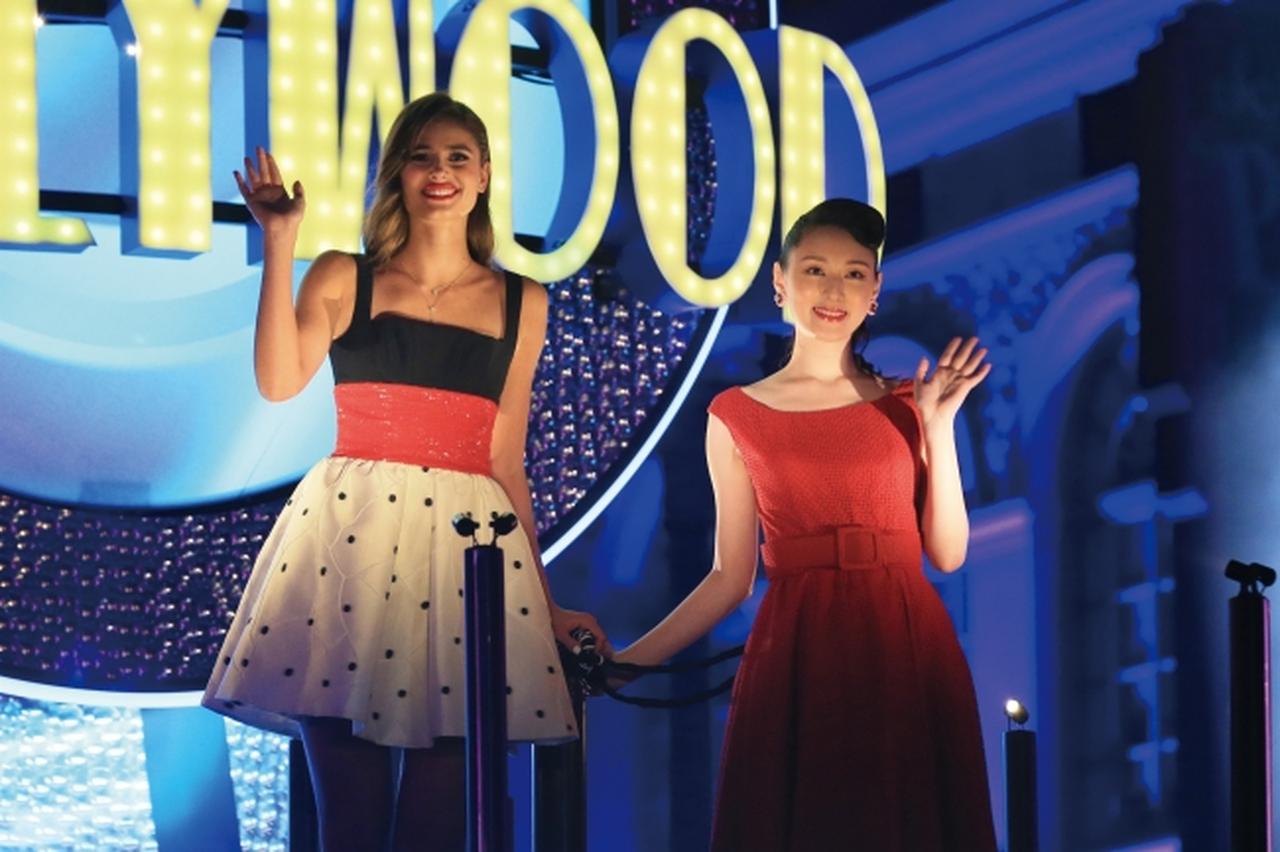 日米のセレブリティが本日の初公開を祝して先頭フロートに登場し、この日だけの豪華共演の姿を披露。