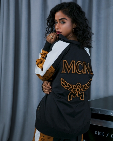 今回はもちろんVisetosパターンが刺繍されたナイロン素材のサイドパネルが使用され、ジャケットの背面にはMCMのロゴが全面に大きく表現され、セットアップで着用するとクラシックなルーズフィットのスタイルが完成。