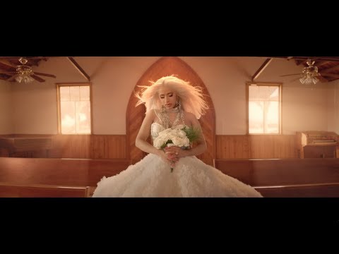 今回のミュージックビデオは、彼女の美しいウエディング姿から始まる。フィアンセとの結婚式で誓いを交わしたかと思えば、幸せそうな雰囲気から一転、全身真っ黒な衣装に身を包んだ彼女が、夫のお葬式に参列する場面へ。