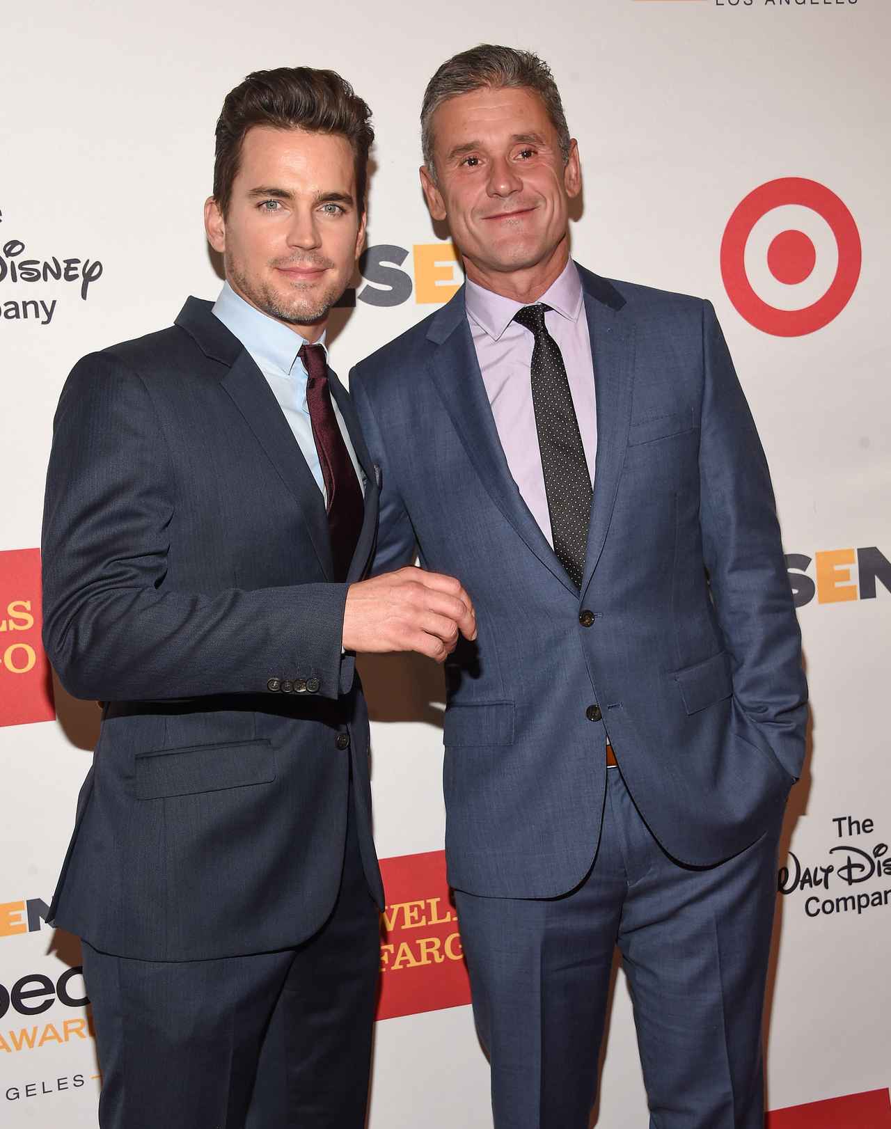 マット・ボマー(左)はパブリシストのサイモン・ホール(右)と2011年に結婚し、代理母出産で3人の子供をもうけている。