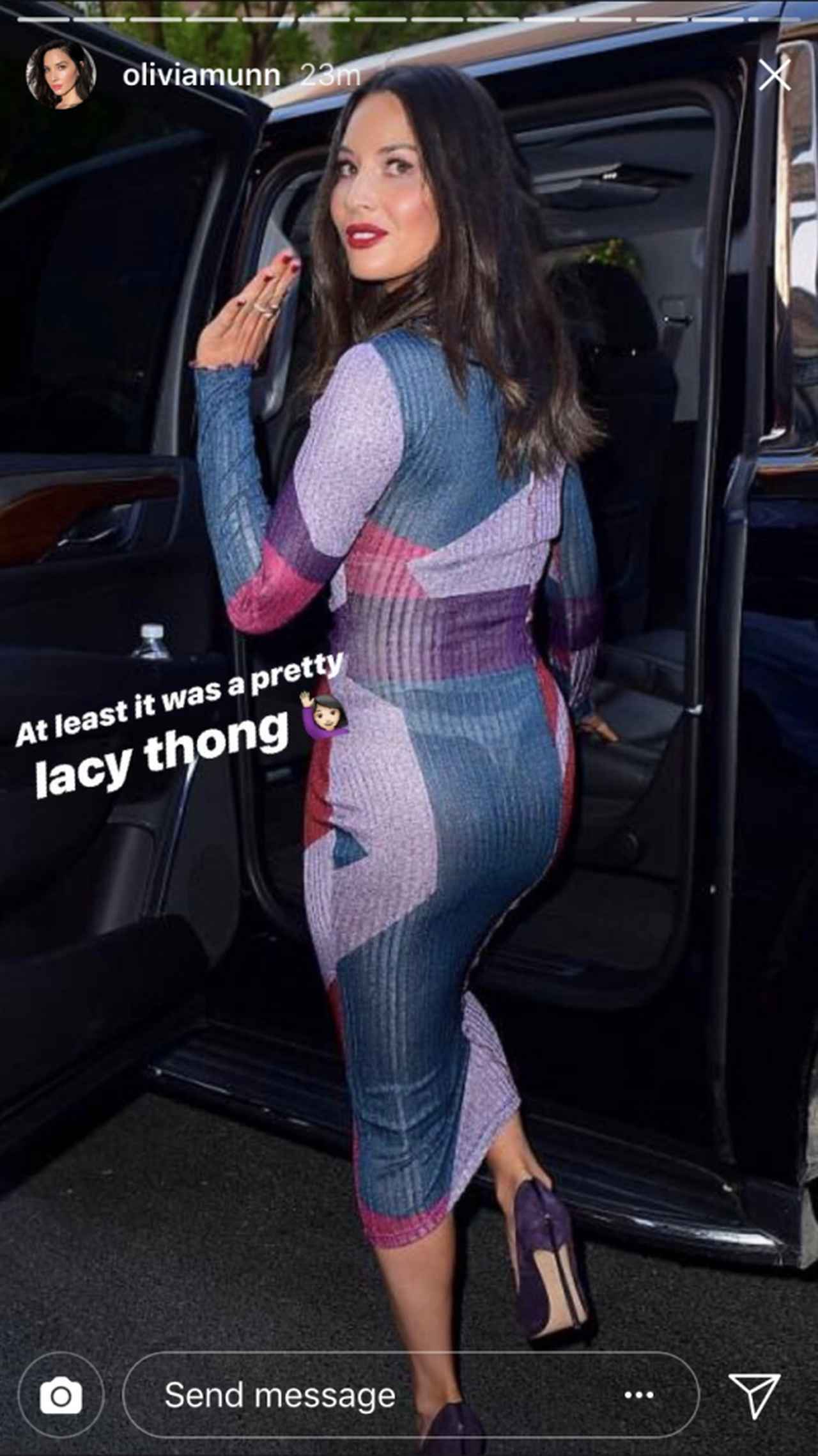 多くのメディアにこの写真が掲載されてしまったが、これに対してオリヴィアは、インスタグラムストーリーに同じ写真を投稿して、「少なくとも、レースの可愛いTバックだったでしょ」とコメント。