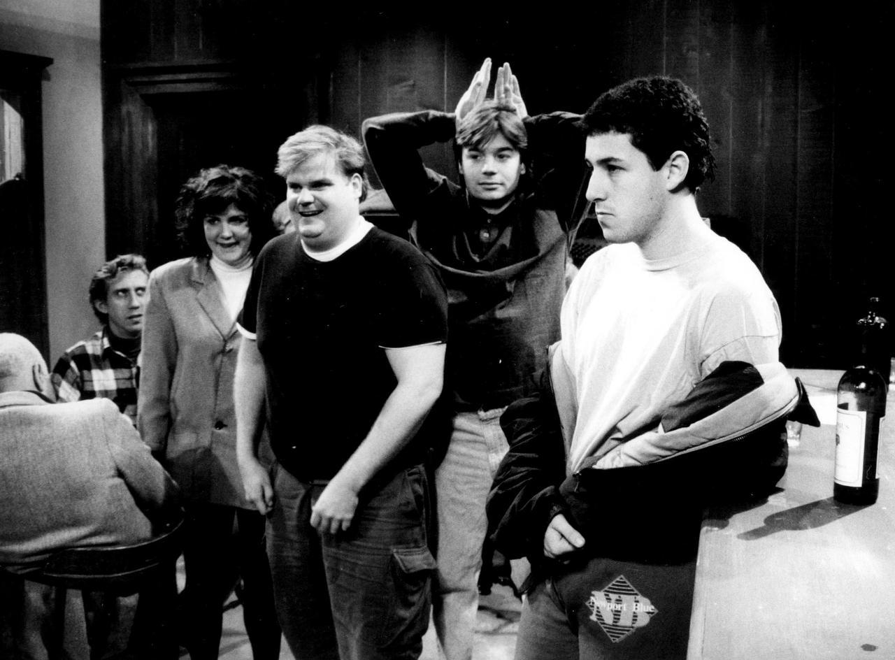 ロマコメを得意とするアダム・サンドラー(右)と、オースティン・パワーズ役で知られるマイク・マイヤーズ(右から二番目)はSNLの同期。©ニュースコム