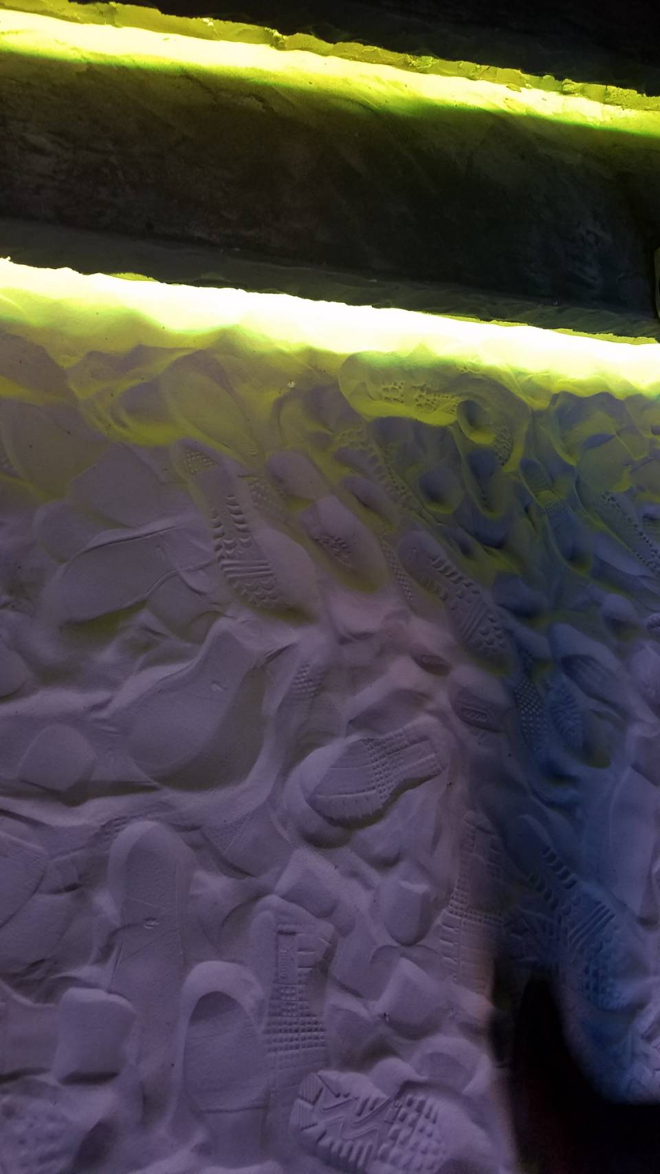 まず施設内に入って一番驚くのが、床一面に敷き詰められた白い砂。まるで本物の島にいるかのような演出で、スクリーンもお昼から日没まで段階を踏んで変わっていく。