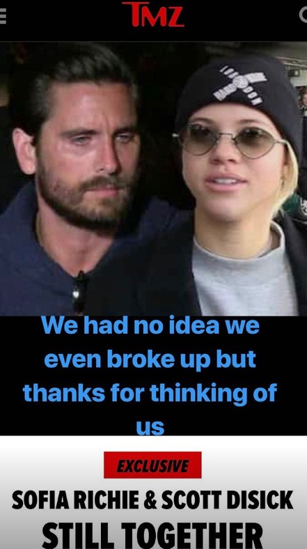 そんななか、スコット本人がSNSを通して破局を否定した。2人はまだ付き合っているというTMZの記事をスクリーンショットしたものに、「僕たちが別れたことさえ知らなかったよ。だけど僕たちのことを思ってくれてありがとう」とコメントを添えて投稿。