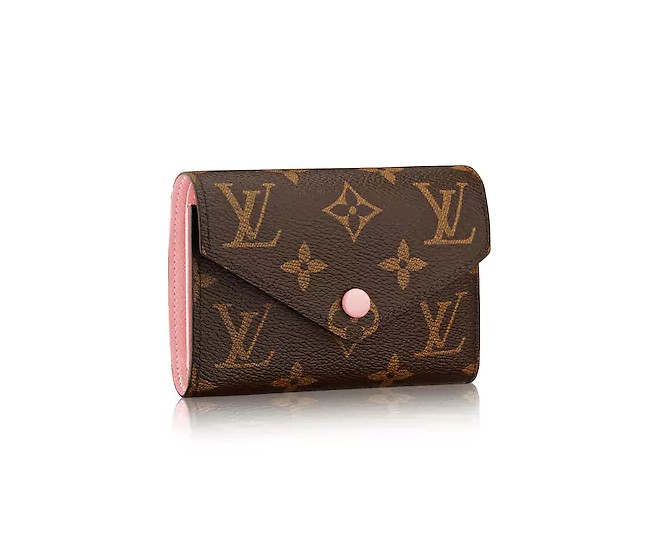 アイコニックなモノグラムにピンクカラーがほどこされたフェミニンなポルトフォイユ・ヴィクトリーヌ。コインケースはファスナー式でカードも6枚も入り収納力は抜群。