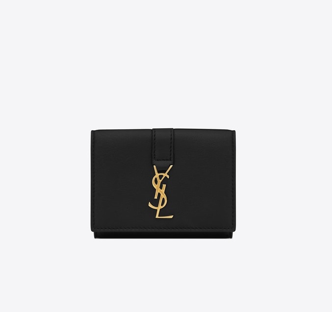 真っ黒なレザーにメタルゴールドの「YSL」ロゴがアイコニックなパレットウォレットは、コインケースが外に付いているので使い勝手は◎。ピンクやベージュなど、カラーも豊富に展開。