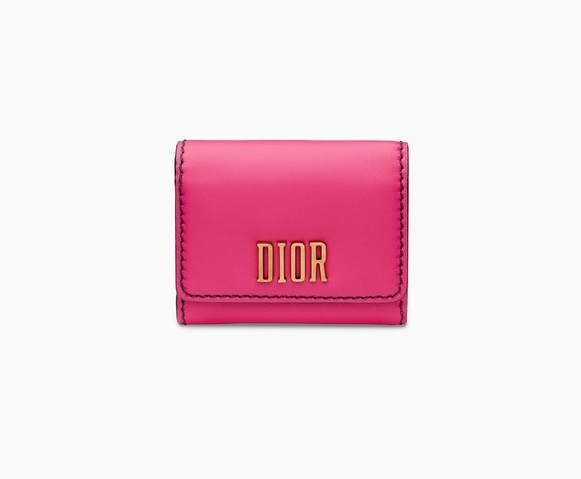 フーシャ カーフレザーの “ディオレボリューション” “ロータス” ウォレットは、持っているだけで気分が上がりそうなショッキングピンクに、ゴールドの「DIOR」が引き立つ。4枚のカードが入り