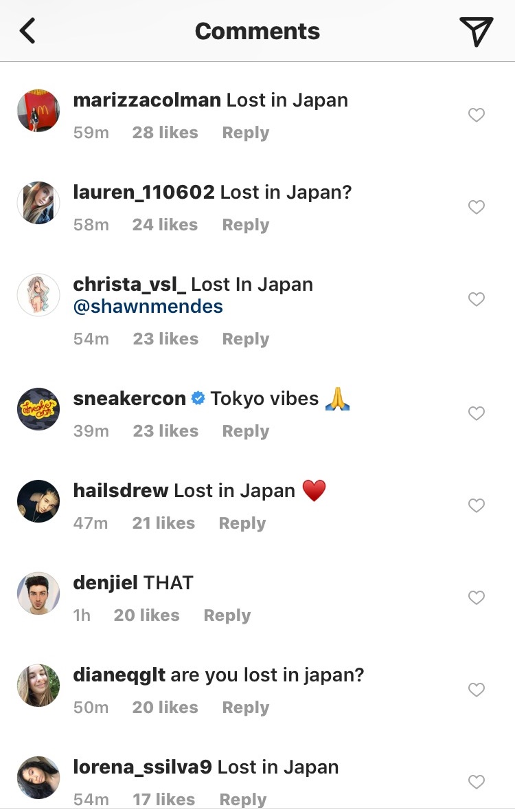 日本にいる愛しい誰かへの思いをつづった同曲だけに、ショーンの楽曲と来日したヘイリーを関連づけるファンが、ヘイリーのコメント欄に「Lost In Japan」とコメントしたことから、迷子コメントが殺到した。