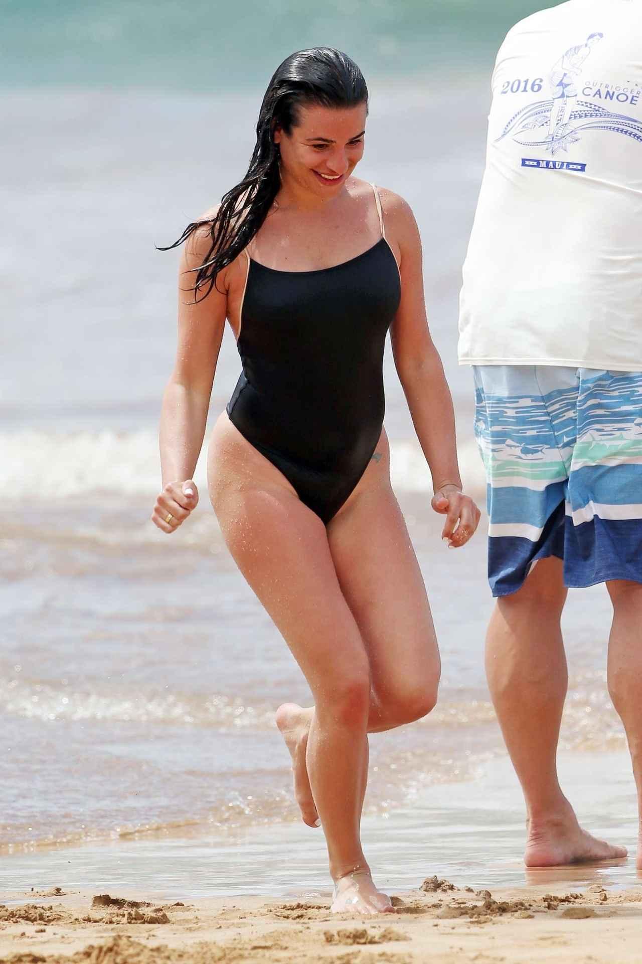 人気ドラマ『グリー』の女優リアは、ブラックのワンピース・スイムウェアを着用してプライベートを満喫。ストラップが細い水着は、女性らしくオシャレにみせてくれるのでオススメ。