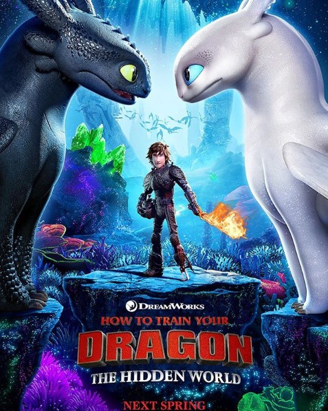 3作目『ハウ・トゥー・トレイン・ユア・ドラゴン:ザ・ヒドゥン・ワールド(原題)』のポスターは、なんとメスのナイト・フューリーが登場する。トゥースとメスのナイト・フューリーが見つめ合い、その奥のヒックが立っており、美しい鉱石が光る世界が描かれている。