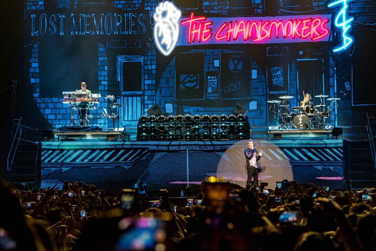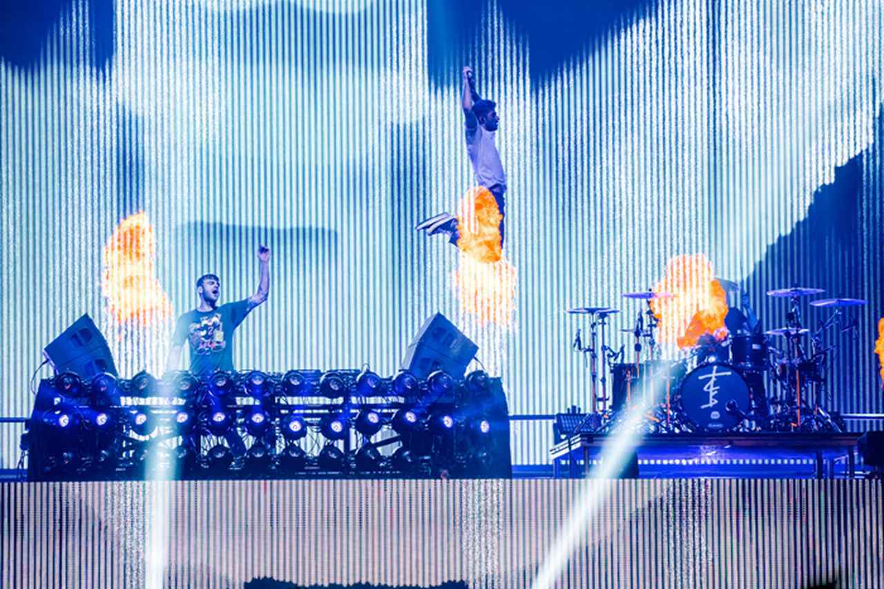 世界中の音楽フェスに引っ張りだこの人気DJデュオ、ザ・チェインスモーカーズの待望のジャパン・ツアーがついに開幕。6月7日に千葉・幕張メッセで行われた初日公演では、平日にもかかわらず約2万人ものファンが集結し、超満員の会場からは終始大歓声と拍手が巻き起こっていた。