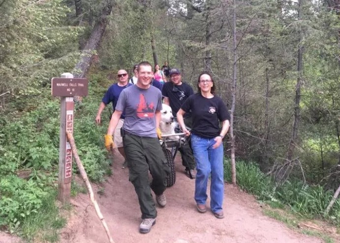 ハイキングで歩くのに疲れた犬のために、救助隊が出動する事態に。