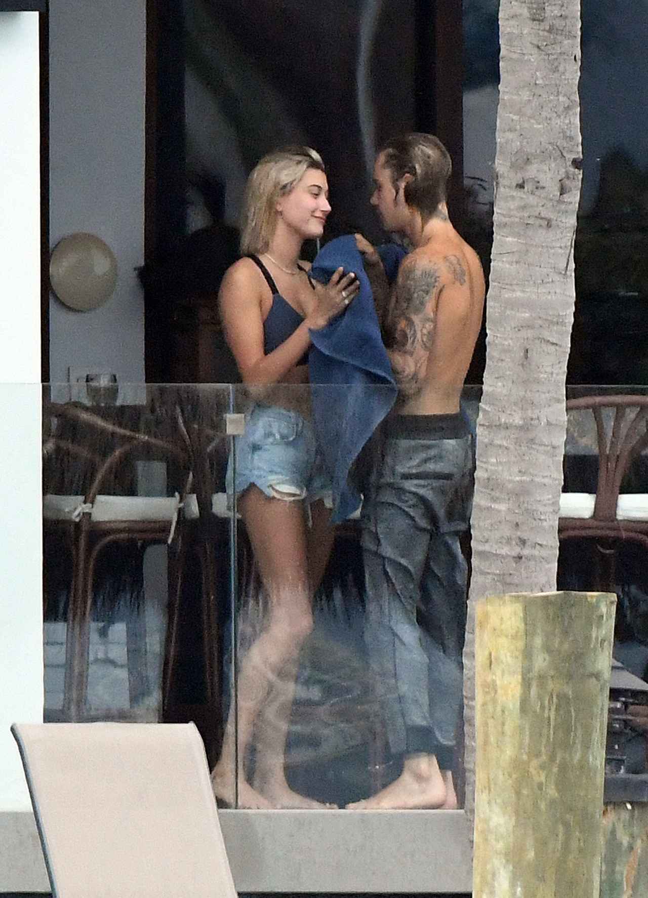 現地時間6月11日の朝、プールに隣接したバルコニーで、ずぶ濡れのジャスティンにヘイリーがタオルを渡し、見つめ合う姿をカメラがキャッチ。