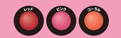 年代やシーンを問わず使いやすい、レッド・ピンク・コーラルの3色展開です。