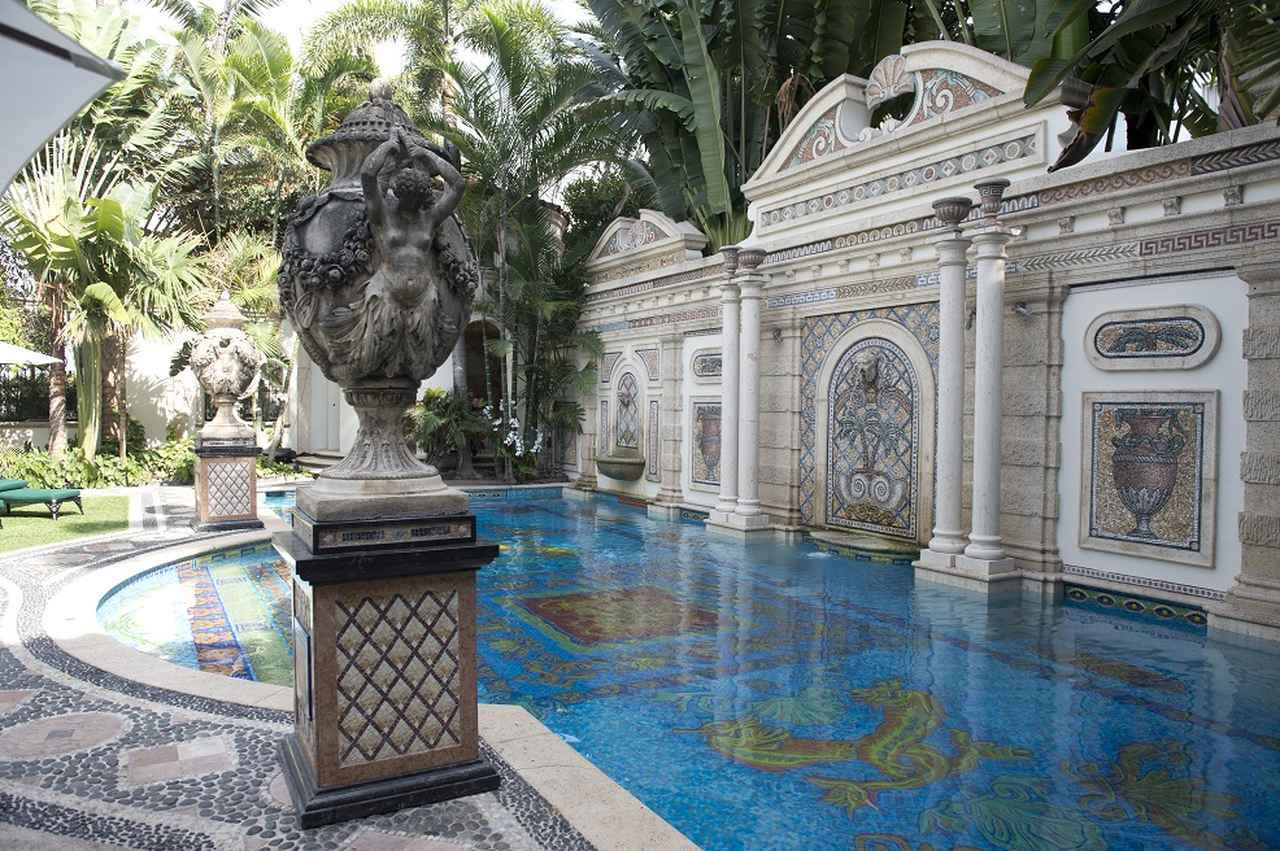 ジャンニがクナナンの銃弾に倒れる現場となった正面玄関や外観だけでなく、ヴェルサーチのド派手な世界観を存分に表現した荘厳で美しい内装や、贅の限りを尽くした生活ぶりがうかがえる自宅内の様子も惜しみなく映し出されている。