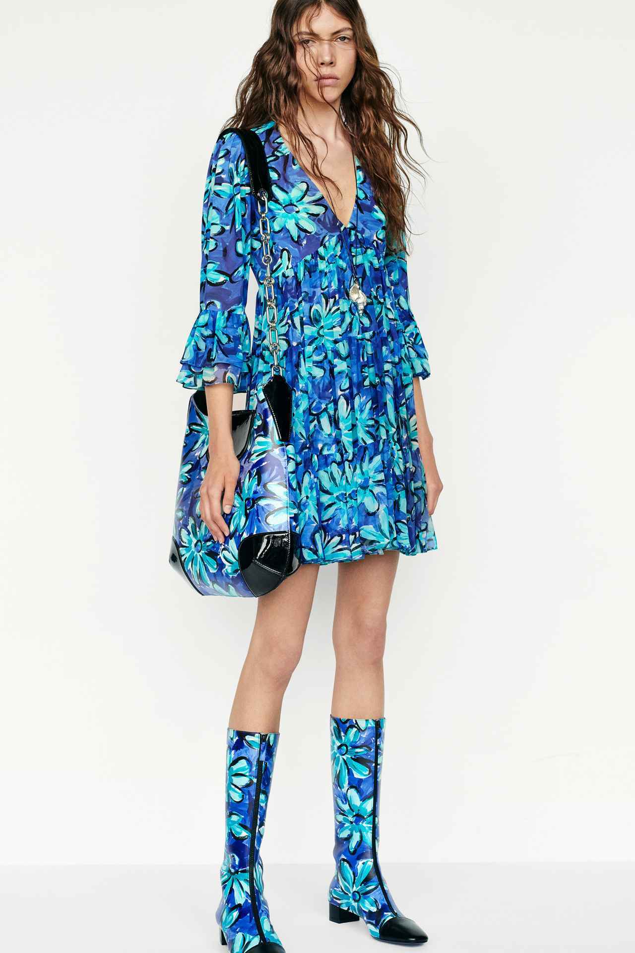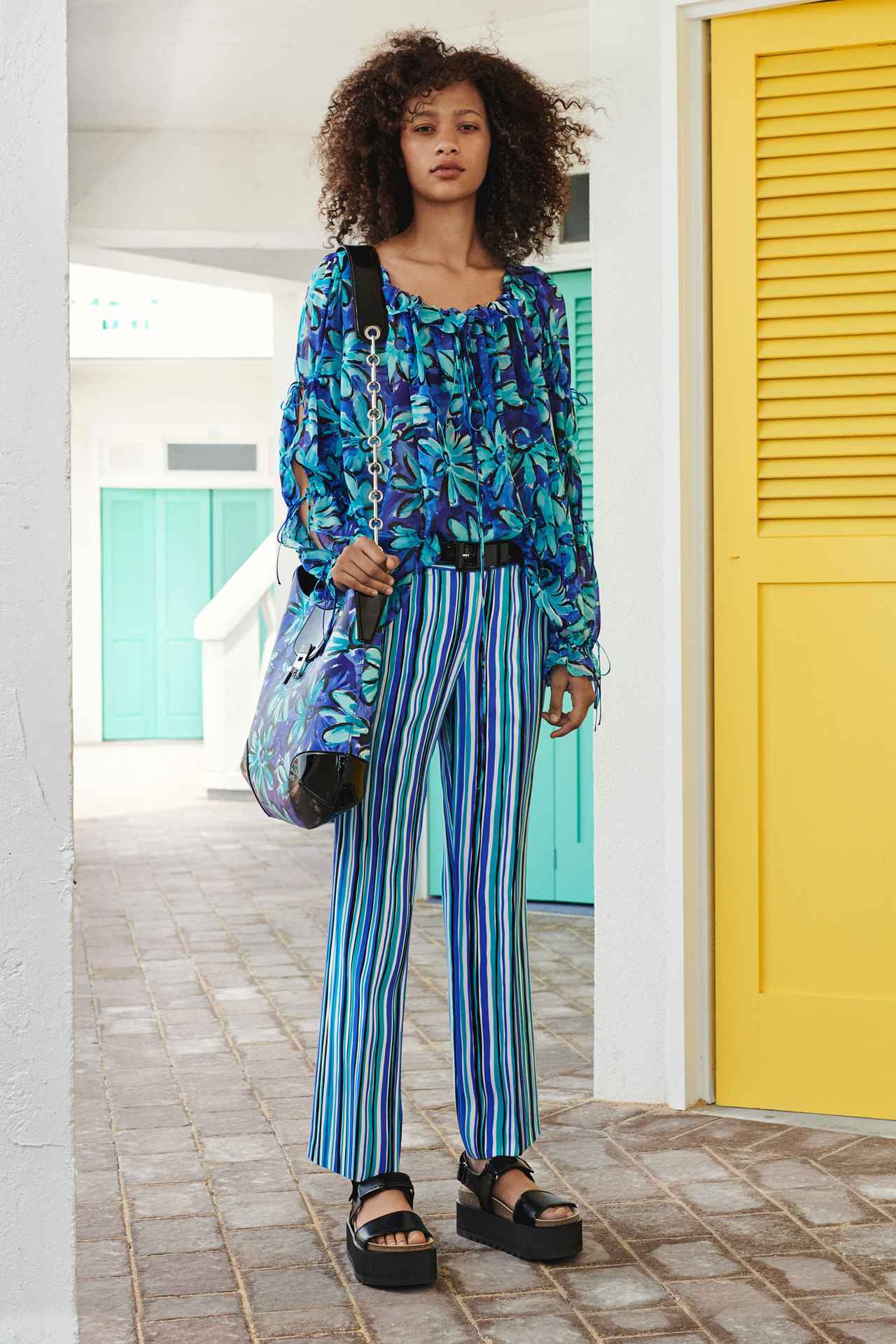 絵画のような花柄、馬蹄、レオパードとギンガムチェックの折衷的なパターンミックス。