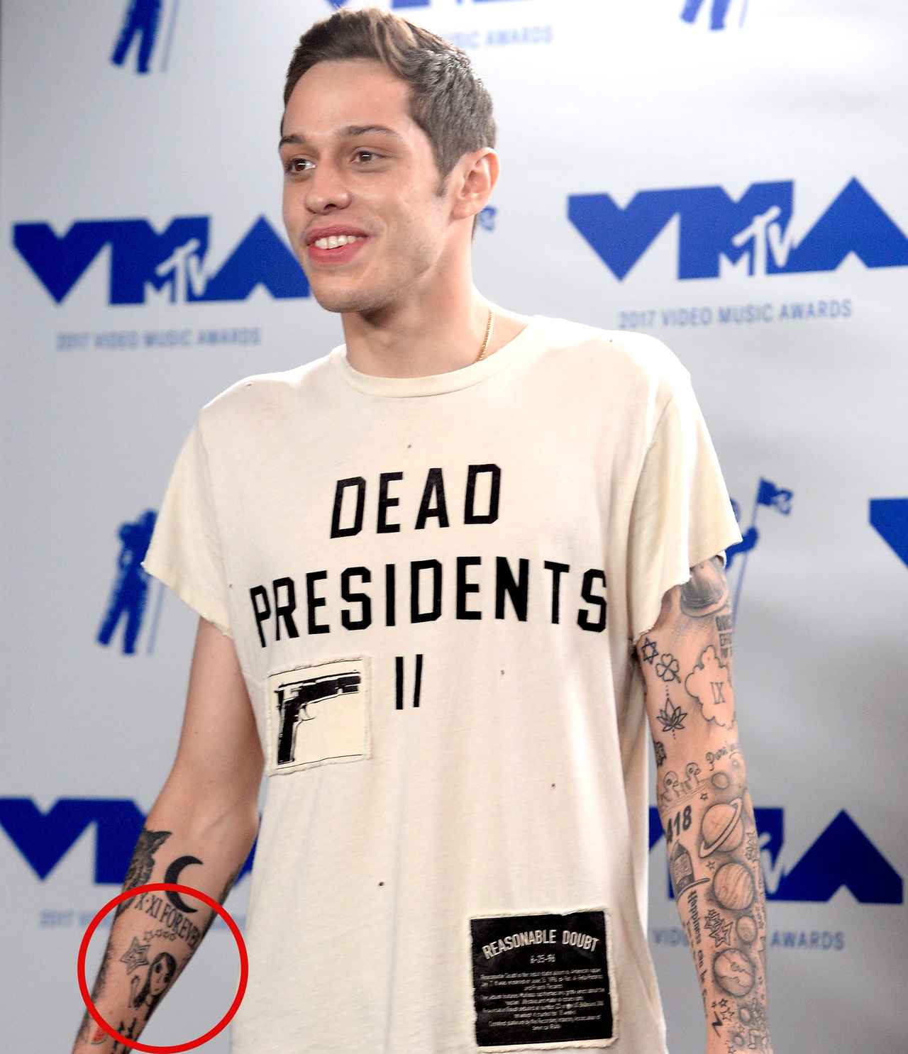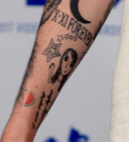 2017年7月のMTV VMAより。右腕内側にキャジー・デヴィッドの顔がタトゥーが入っている。