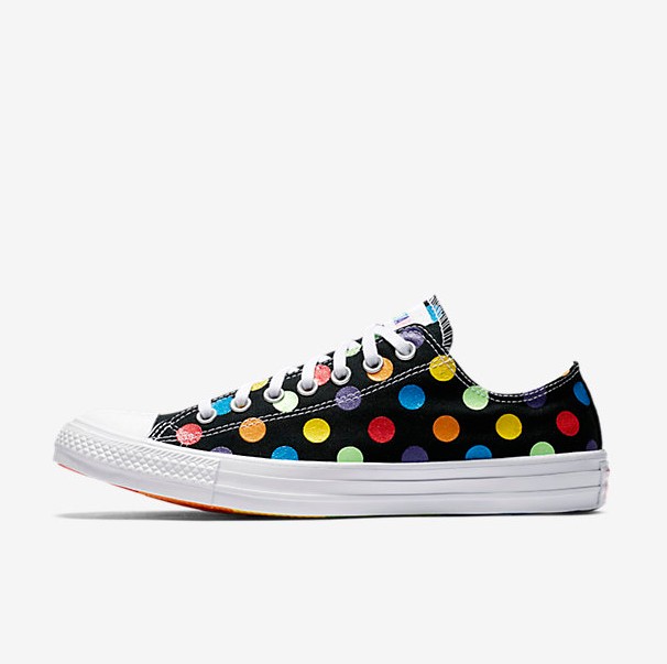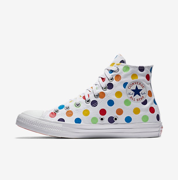 白地にレインボーのドット柄のデザインになっているオールスターハイカット。