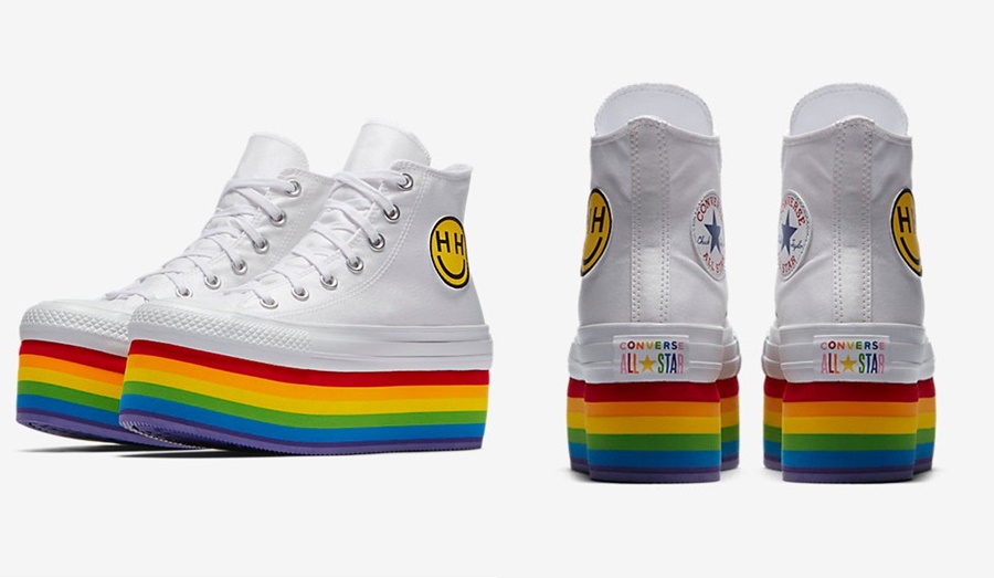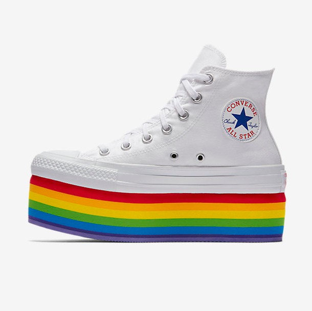 厚底のソール側面にレインボーカラーがデザインされているオールスタープラットフォーム。