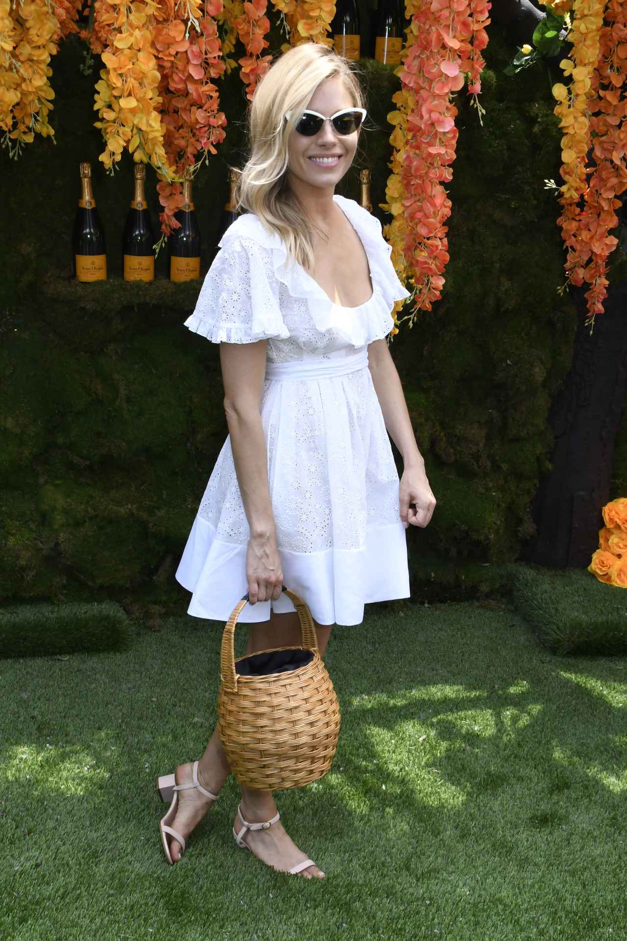 胸元に大ぶりラッフルがほどこされたVALENTINOのコットンワンピースでとびっきりキュートにまとめたシエナは、手元に持ったバスケットバッグで夏らしさをアップ。