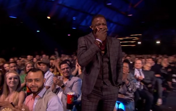 チャドウィックはこのことを説明し、自分の名前が呼ばれて驚いているジェームズをステージに呼び、ベスト・ヒーロー賞の受賞でもらったポップコーンの形をしたアワードをジェームズに渡した。