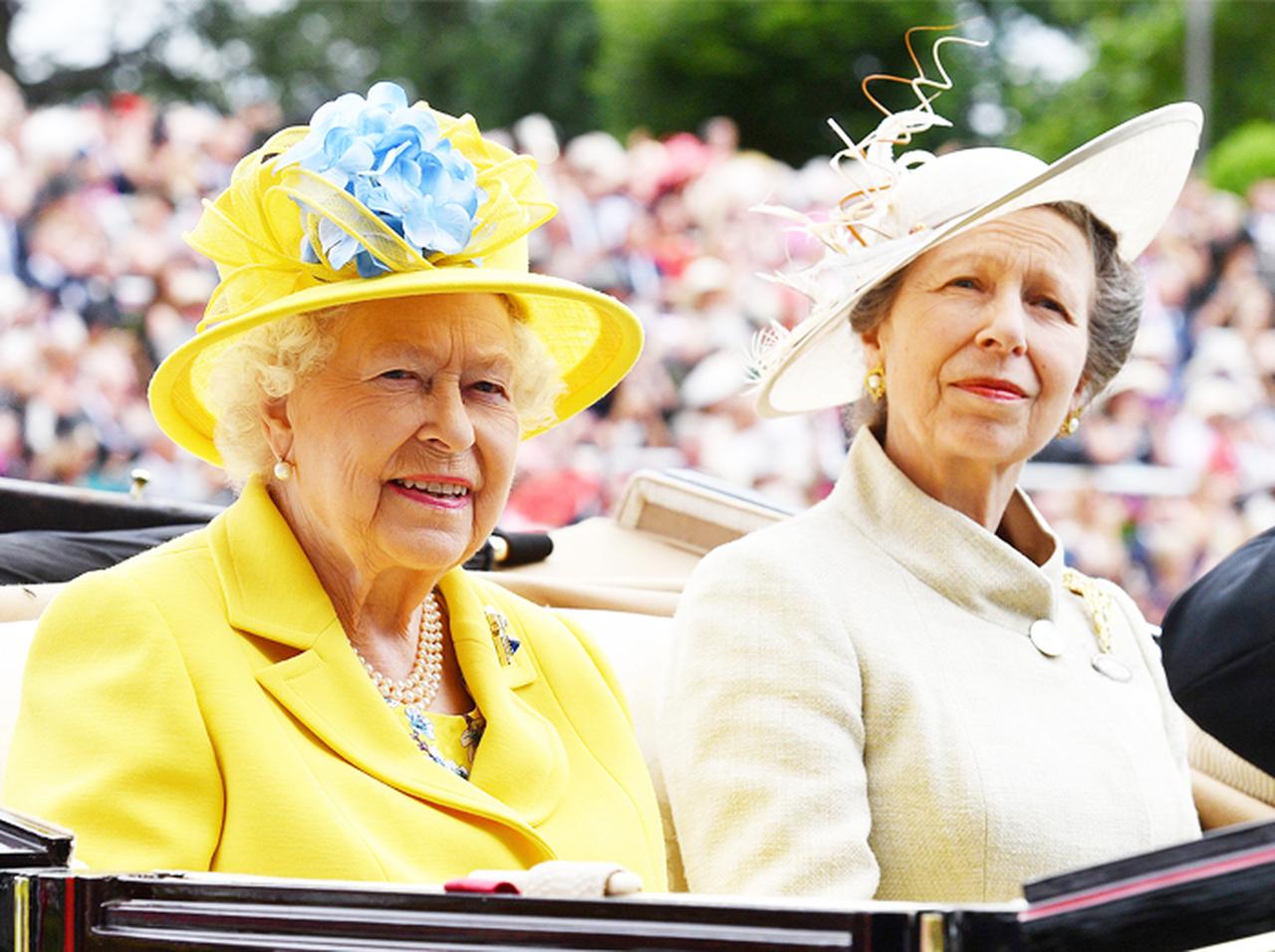 現地時間6月18日に開幕した競馬の祭典「ロイヤル・アスコット」に長女のアン王女とともに到着したエリザベス女王。