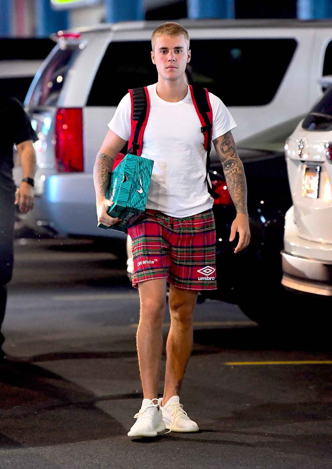 オフホワイトとアンブロのコラボショーツを履くジャスティン・ビーバー。