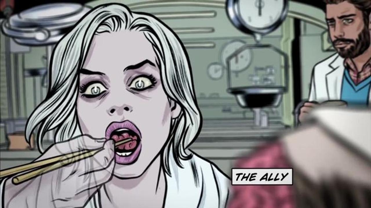 脳みそ入りのカクテルに舌鼓を打つ、ローズ演じるリヴ。