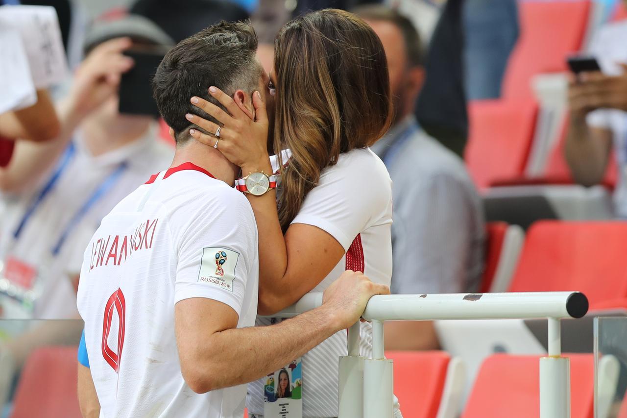 6月19日に行われたセネガルとの試合で2対1で敗戦を喫したポーランド代表。その試合の模様をスタンドから見守っていたアナは、試合後に落胆した様子で客席の方に駆け寄ってきた夫ロベルトに慰めのキス。