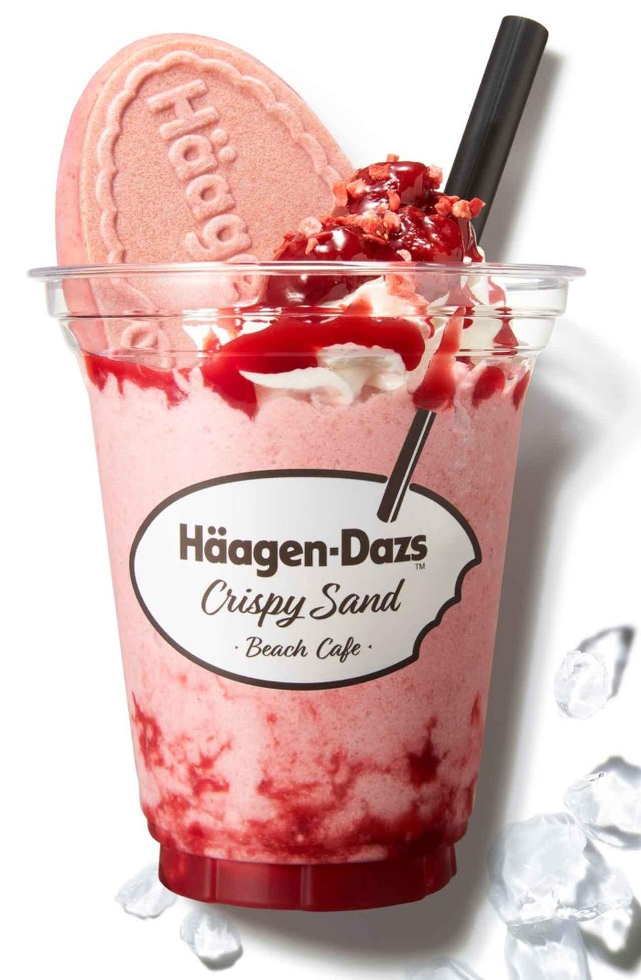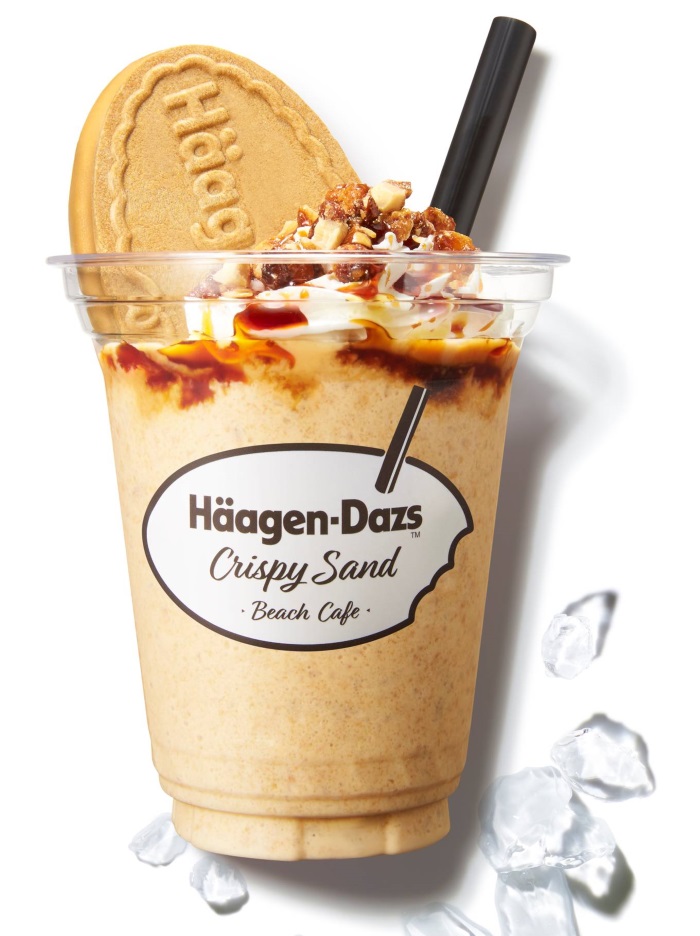 そんな期間限定カフェで提供されるメニューが決定。 “CRISPY SAND BEACH CAFE”で提供されるメニューは、ハーゲンダッツ クリスピーサンドを丸ごとミキサーにかけ、濃厚な味わいのシェイクに仕立てたスペシャルなドリンク。