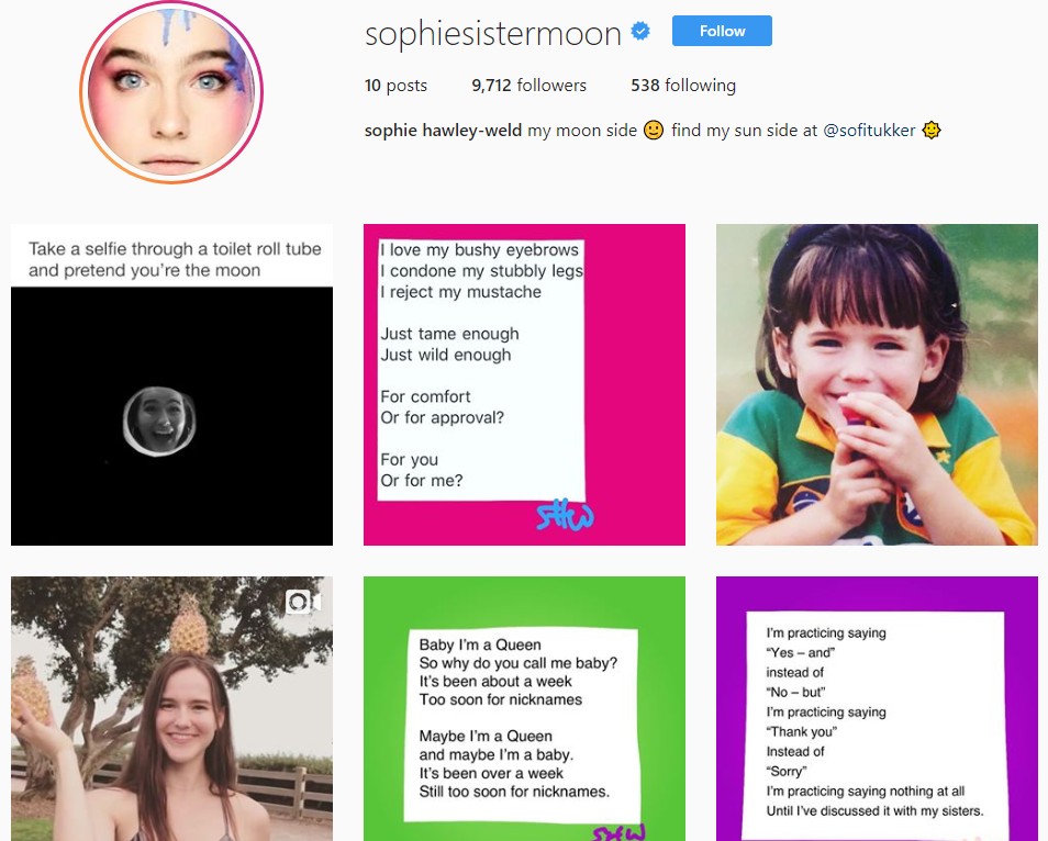 ソフィーのインスタグラムはポエムの投稿が中心。©Sophie Hawley-Weld/Instagram