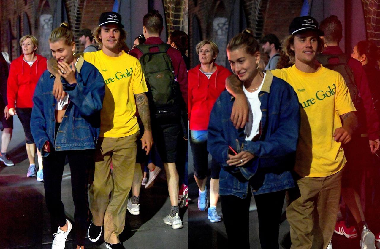 公の場でも堂々と手をつなぐジャスティンとヘイリー。人混みでキスも。