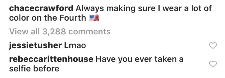 人気俳優のチェイス・クロフォード(32)が7月4日のアメリカ独立記念日に関連して久しぶりにインスタグラムを更新した。