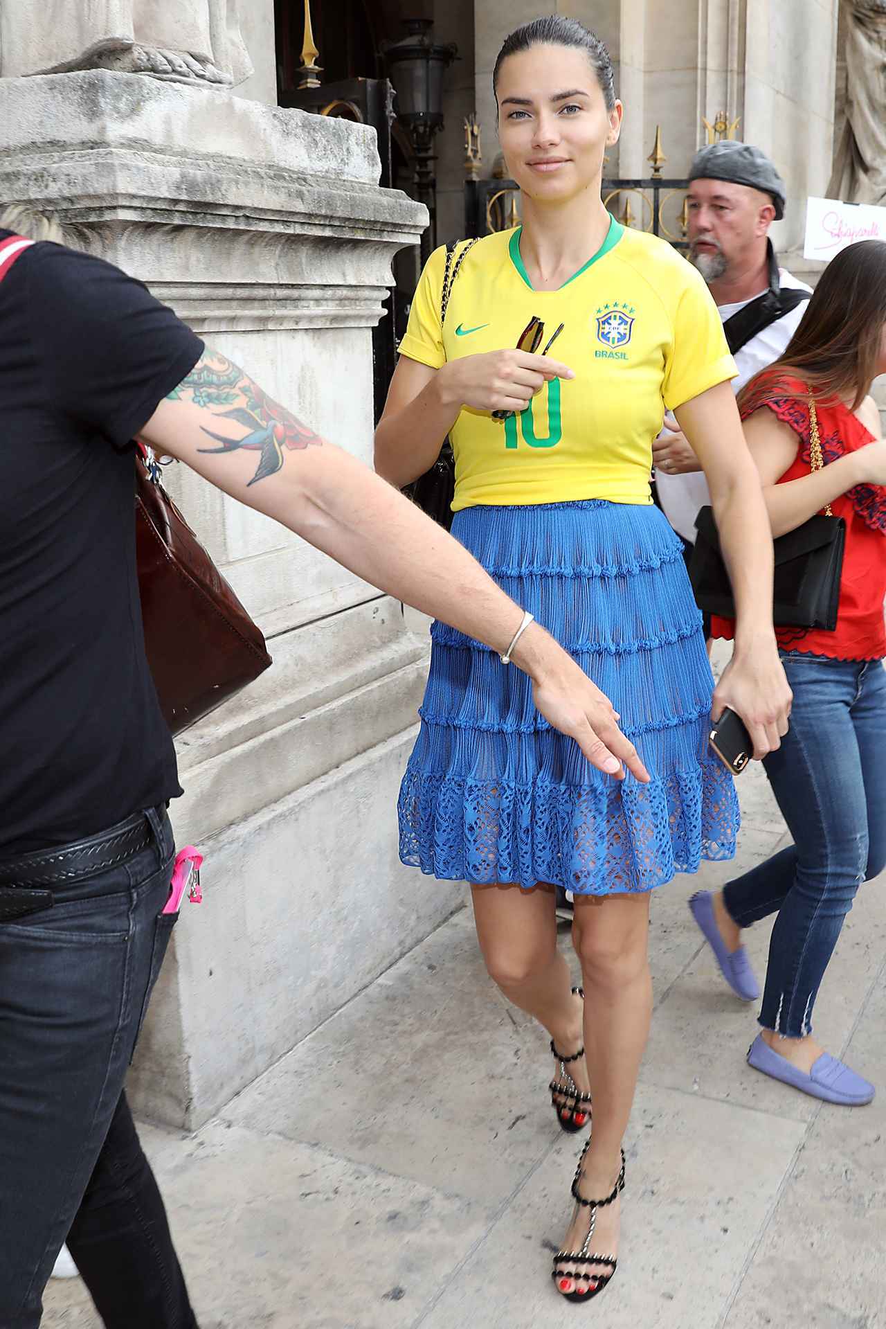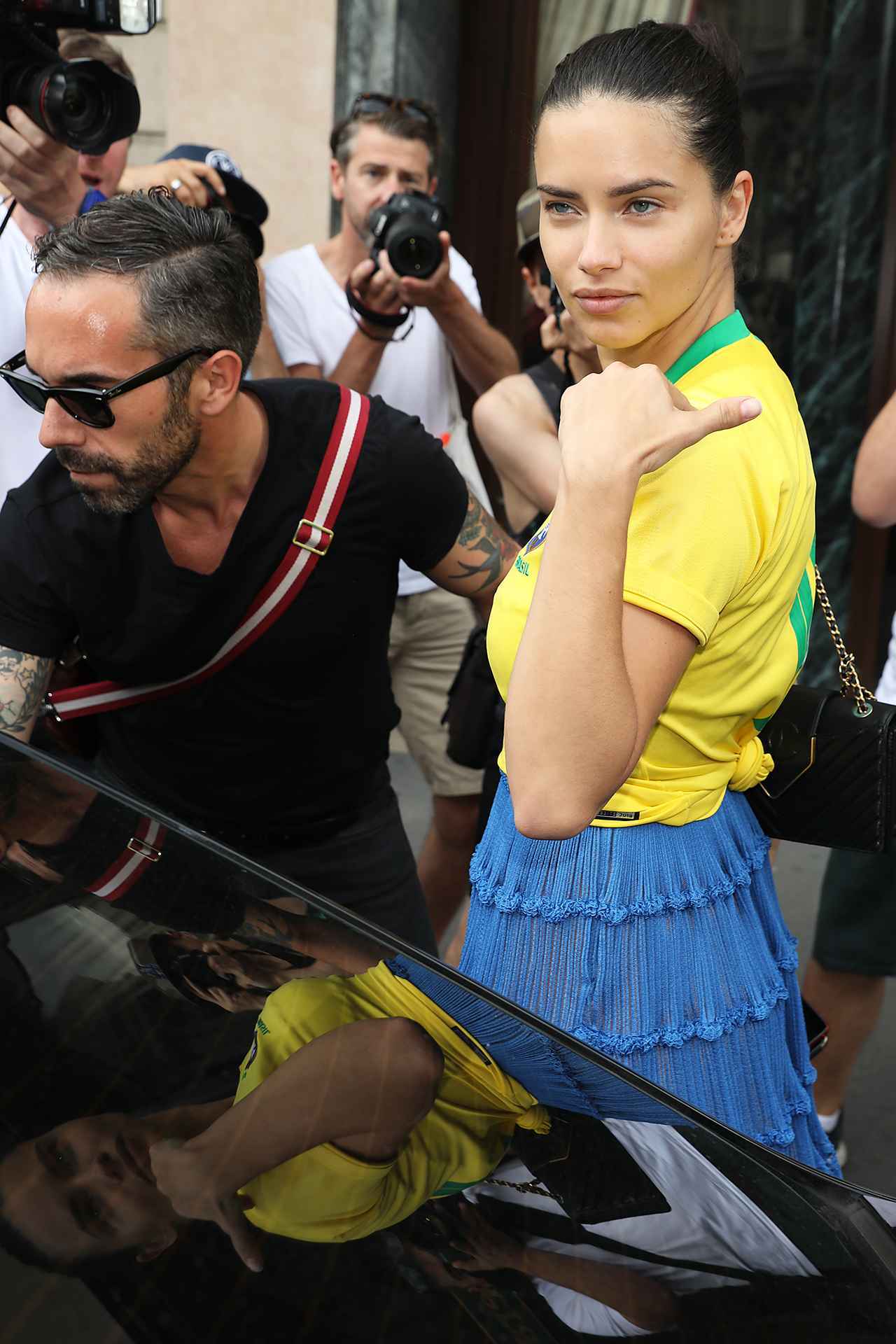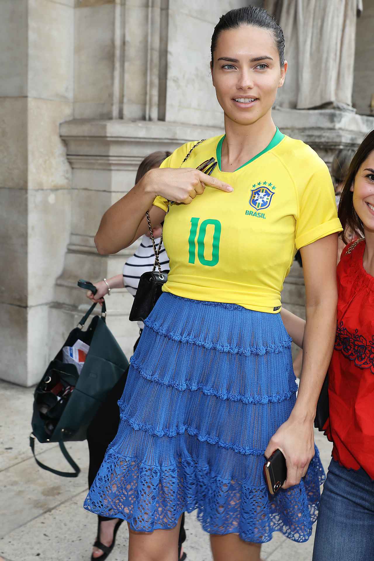 現在コレクション会場付近には、多くのパパラッチが集結しており、セレブやモデルたちは気が抜けない状態。ところが、アドリナはそんなことをまったく気にする素振りを見せず、堂々と着用していたのはなんとブラジル代表のユニフォーム。