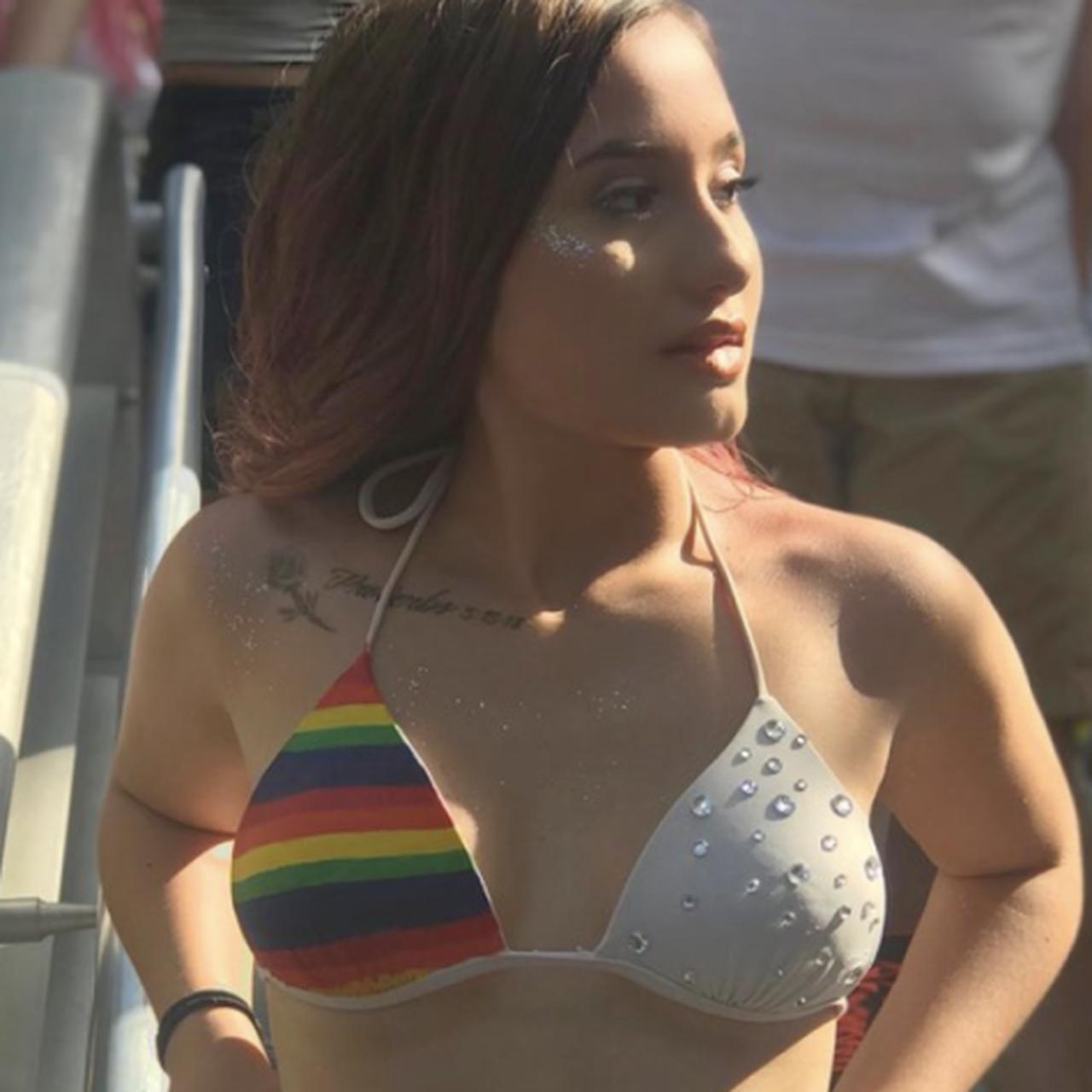 その写真は、サマンサがレインボーのビキニを着用して横を向いている写真なのだけれど、このときのサマンサの顔が、アリアナ・グランデとデミ・ロヴァートを掛け合わせたようだとネット上を騒がせている。