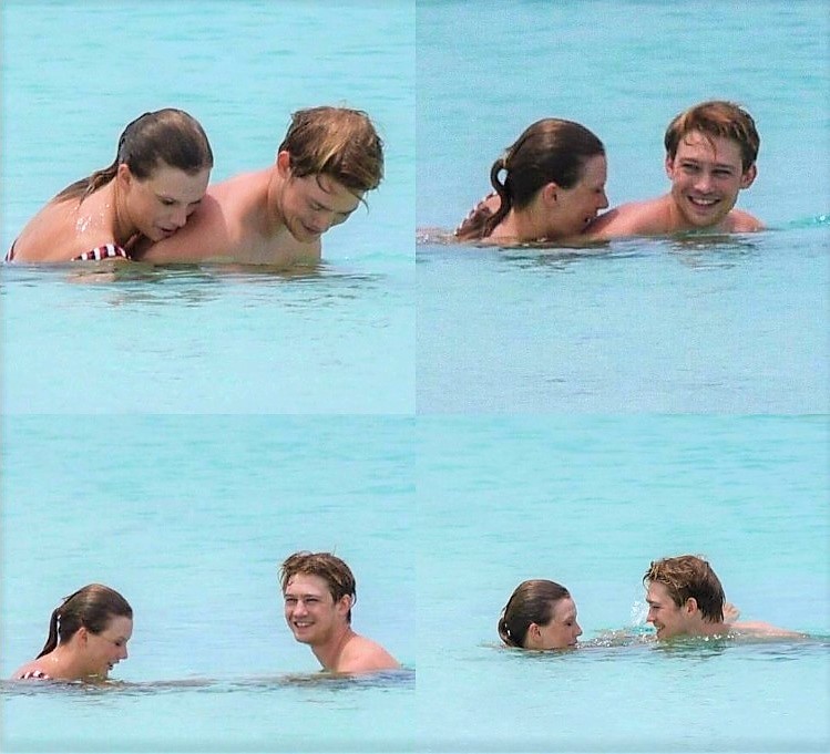 普段は公の場ではイチャイチャする姿を一切見せないテイラー&ジョーだが、開放的な南の島の雰囲気に、ついついガードが緩んだ様子。