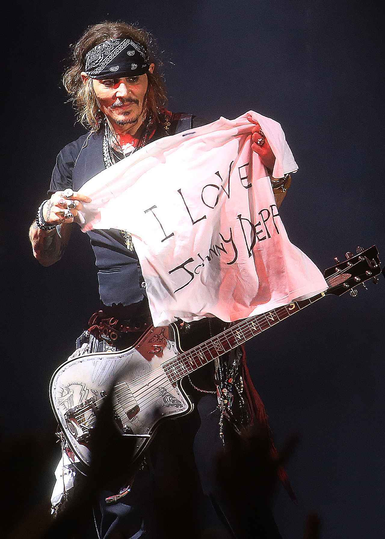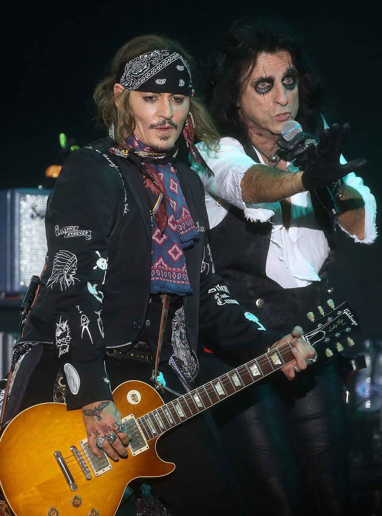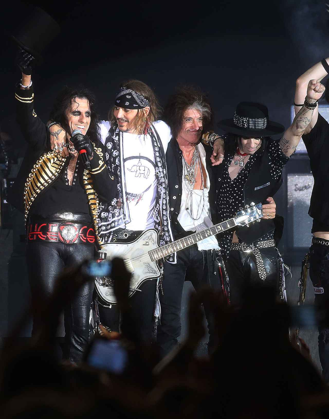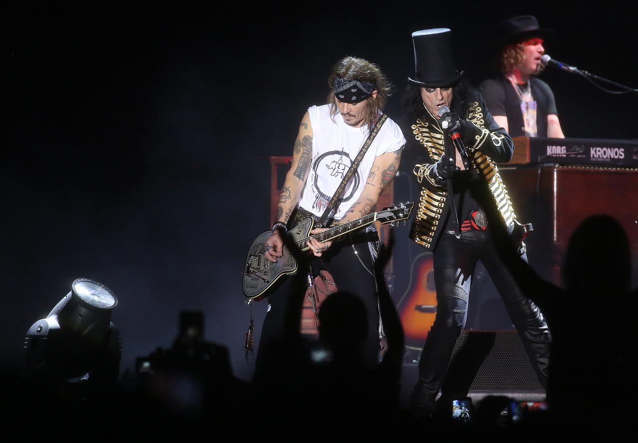 先日、イタリアで行われたジョニー率いるロックバンド、ハリウッド・ヴァンパイアーズのツアーでステージにあがったジョニー。