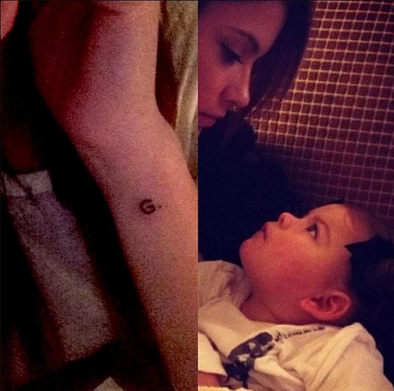 左:アシュレイの手首に入った「G」のタトゥー。右:ジョージアちゃんを優しく見つめるアシュレイ。©Ashley Benson/ Instagram