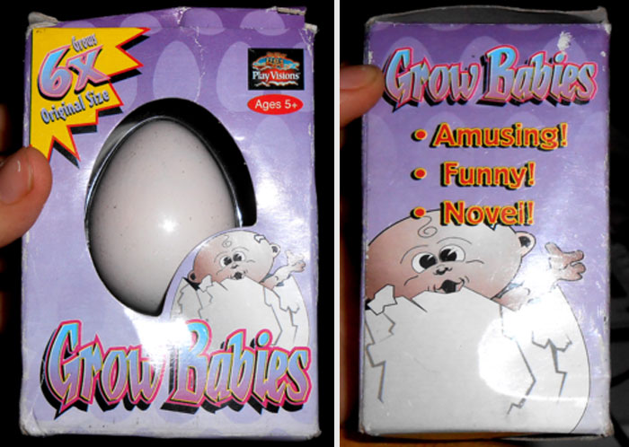 ある海外のネットユーザーが、リサイクル店で、いつ頃作られたのかも分からない、かなり古いタイプの「水に浸けると膨らむ卵」のおもちゃを発見。