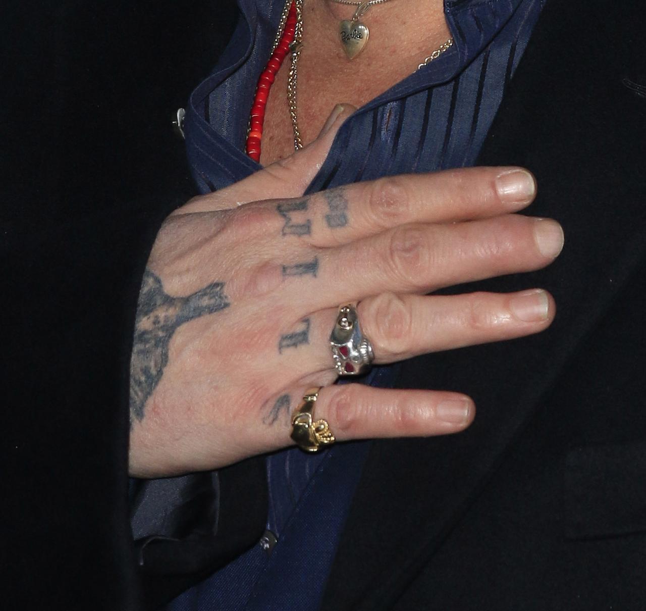 そのタトゥーはドロ沼離婚騒動後、その文字の「LI」を「CU」へと変えて「人間のクズ」という意味にあたる「SCUM」という文字になったことでも話題になった。